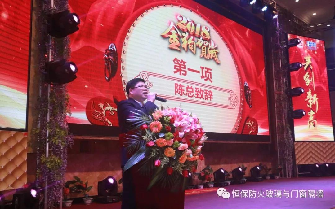鞭竹炮響辭舊歲,瑞犬報(bào)喜賀新年!1月20號(hào)鶴山市恒保防火玻璃廠有限公司2017年年終總結(jié)頒獎(jiǎng)典禮暨 2018年迎春晚會(huì)在歡聲笑語中奏響了幸福的音符!