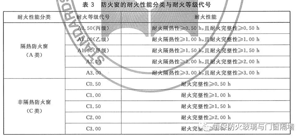 備注:根據國家標準《防火窗》GB16809-2008,甲級防火窗的耐火性能分類與耐火等級的規定:耐火隔熱性≥1.50h,且耐火完整性≥1.50h的耐火等級代號是A1.50(甲級);耐火完整性≥1.50h的耐火等級代號是C1.50。所以我們常說的甲級防火窗是指耐火隔熱性≥1.50h,且耐火完整性≥1.50h的防火窗。