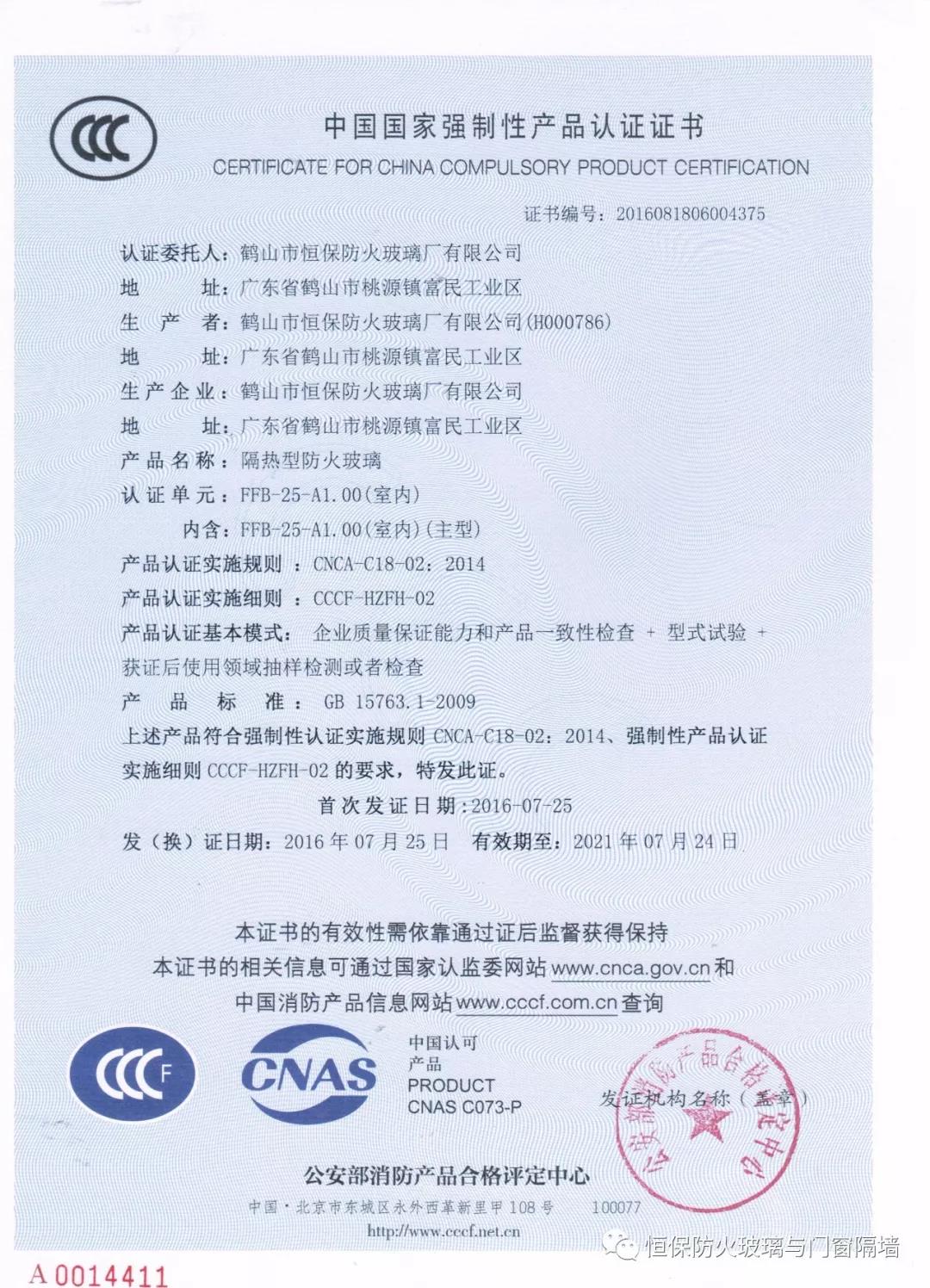 4.恒保公司一共12個產品獲得國家3C認證證書,2小時和3小時鋼質隔熱防火窗更是國家首個通過國家認證的產品;