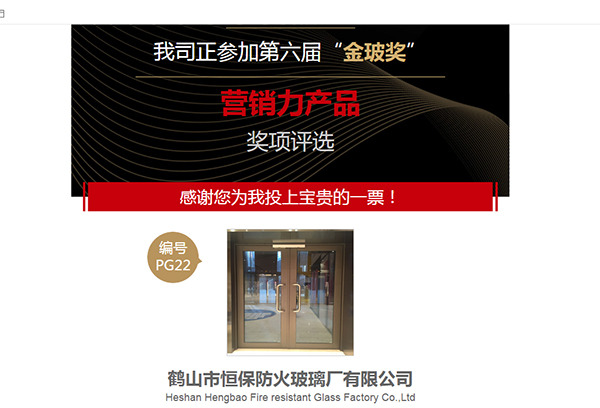 鶴山市恒保防火玻璃廠有限公司榮獲第六屆中國玻璃行業品牌評選營銷力產品獎